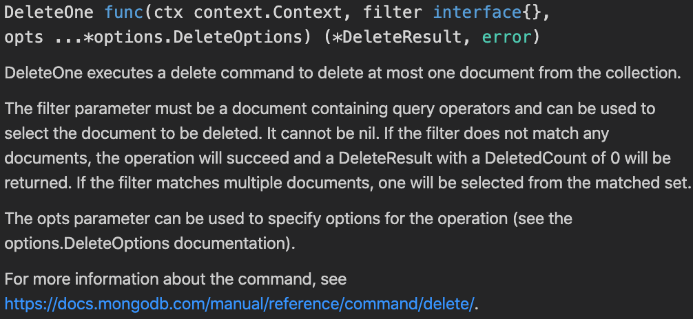 func(ctx context.Context, filter interface{},opts ...*options.DeleteOptions) (*DeleteResult, error)